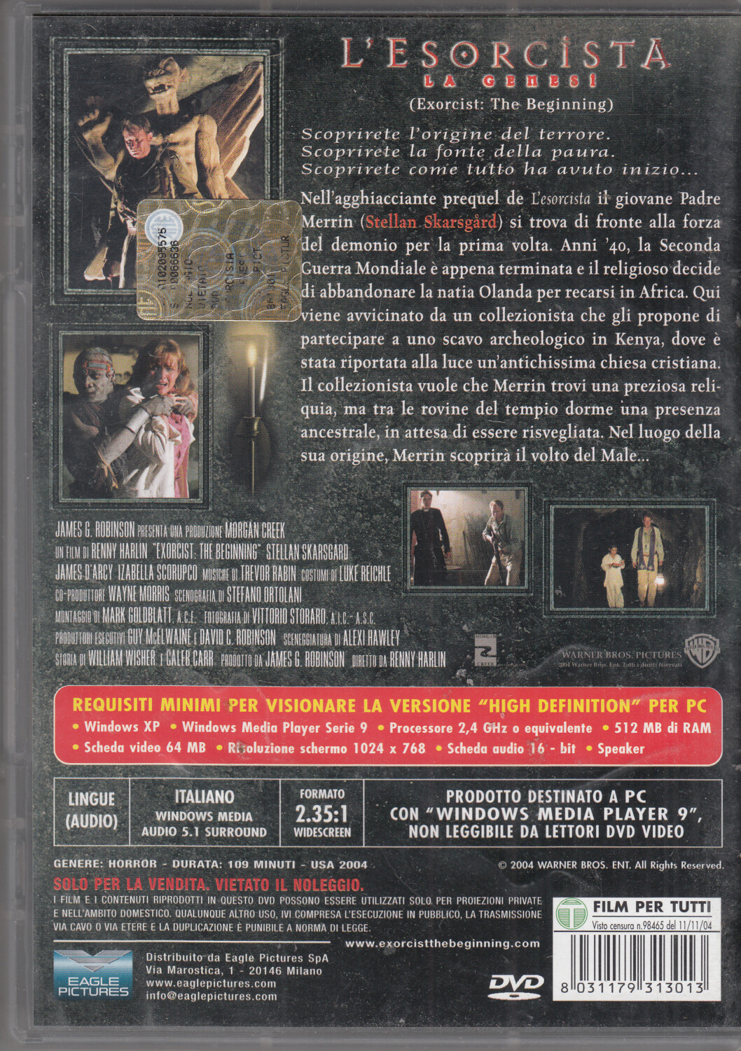| Titolo: | L’esorcista – La Genesi – Versione High Definition per PC – DVD in Italiano ed. |