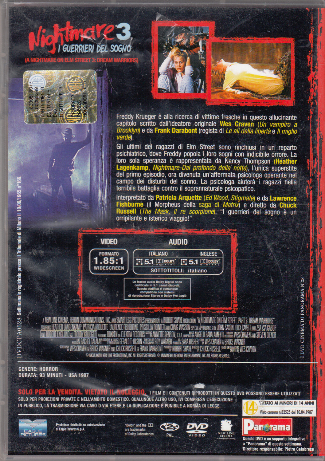 | Titolo: | Nightmare 3 – I guerrieri del sogno (Robert Englund) – Versione da edicola – DVD in Italiano |