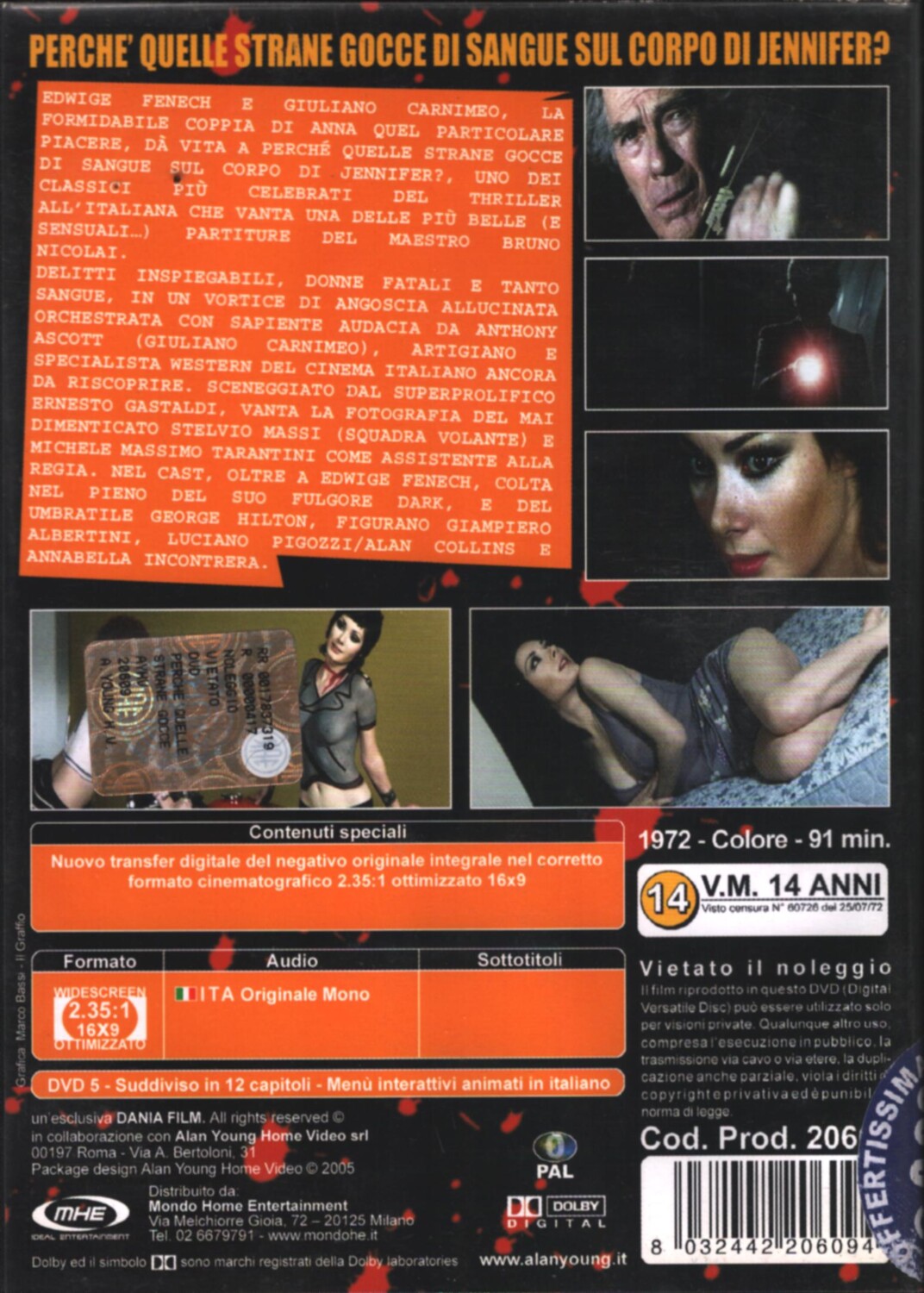 | Titolo: | Perchè quelle strane gocce di sangue sul corpo di jennifer? DVD in italiano |