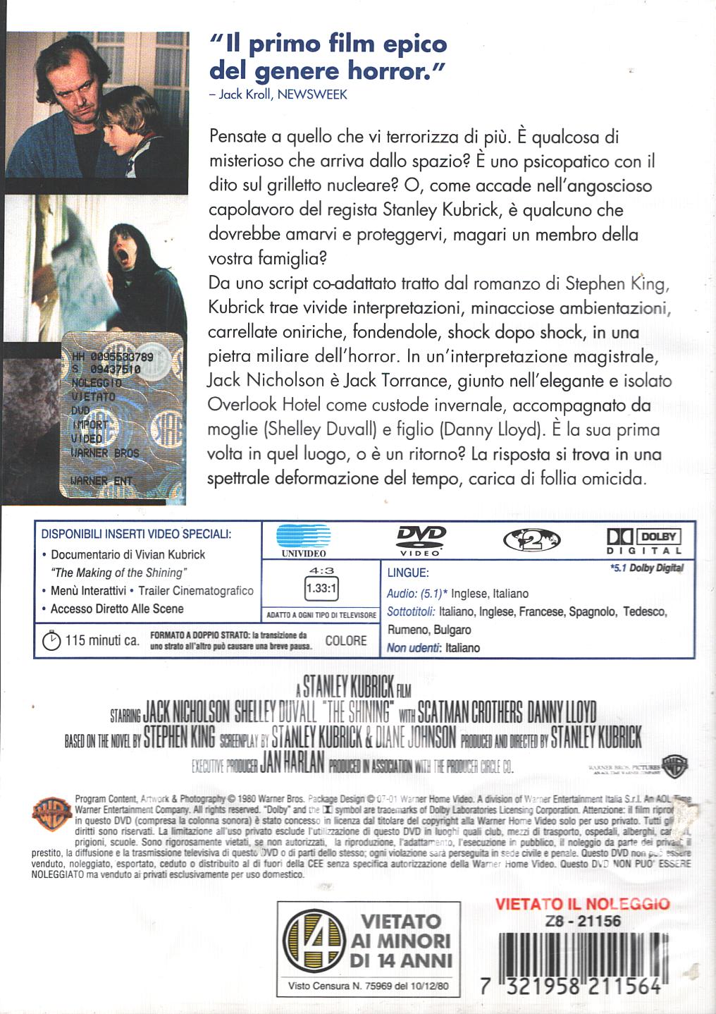 | Titolo: | Shining. Stanley Kubrick Collection. Restaurato e Rimasterizzato. DVD in Italiano |