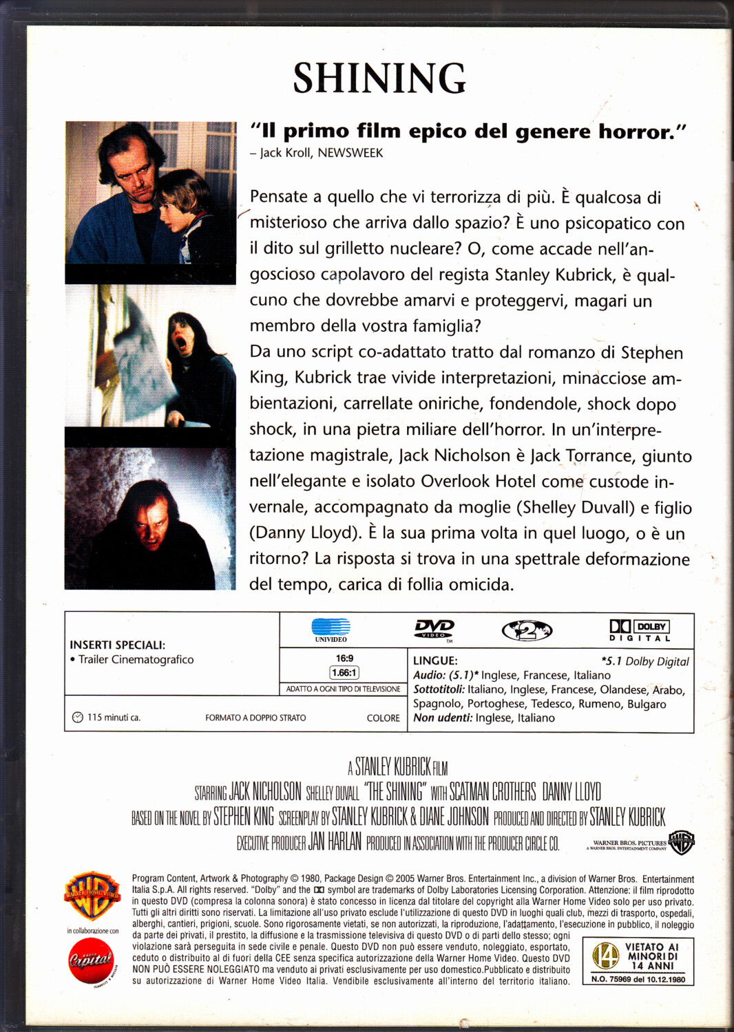 Shining – DVD Stanley Kubrick Collection Vol. 2 – Versione da edicola – DVD in Italiano
