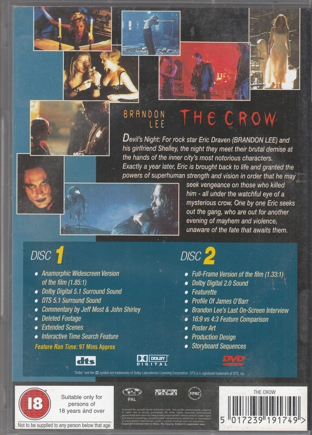 | Titolo: | The Crow con Brandon Lee. Collector’s Edition con n. 2 DVD Edizione Regno Unito PAL Regione 2, Lingua Inglese |