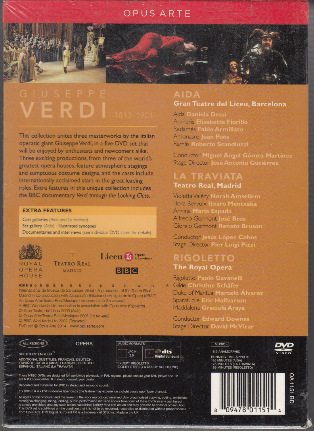 | Titolo: | Aida, La Traviata, Rigoletto di Giuseppe Verdi. The Royal Opera House. DVD Edizione Stati Uniti NTSC Regione 0, Lingua Inglese |