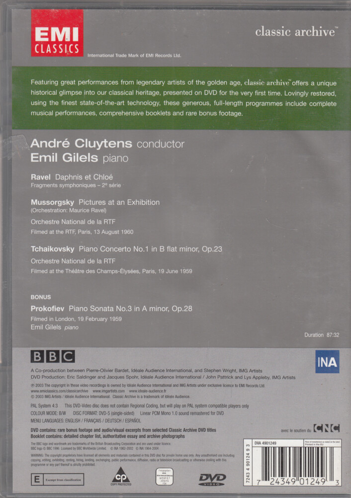 Andre’ Cluytens e Emil Gilels Classic Archive EMI DVD in Inglese