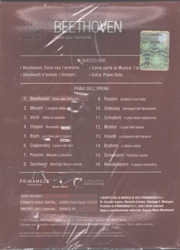 | Titolo: | Beethoven dove osa l’armonia (Corrado Augias) – DVD I Segreti della Musica vol. 1 – Versione da edicola – DVD in Italiano |