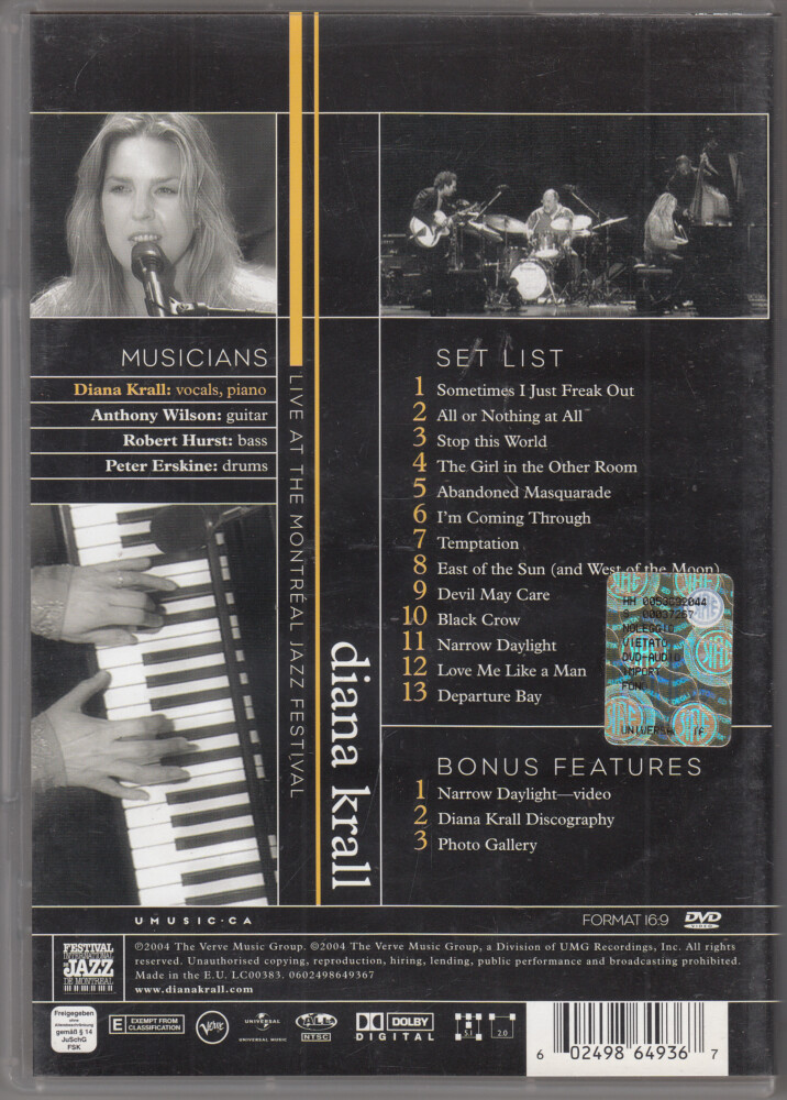| Titolo: | Diana Krall Live At The Montreal Jazz Festival DVD NTSC (No PAL) in Inglese |