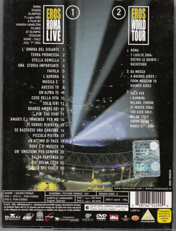 | Titolo: | Eros Ramazzotti Roma Live Cofanetto con n. 2 DVD in Italiano |