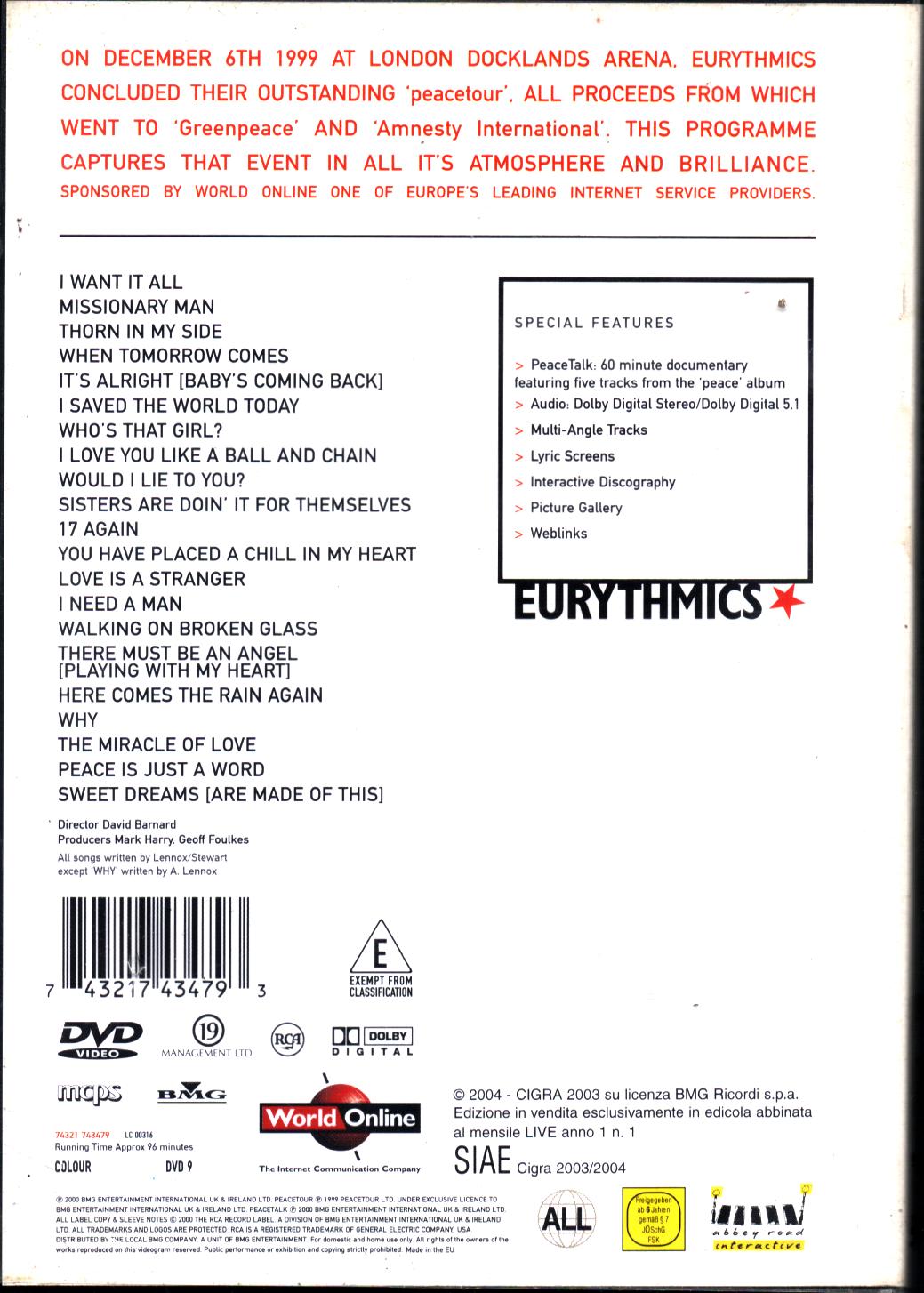| Titolo: | Eurythmics – Peacetour DVD in Inglese |