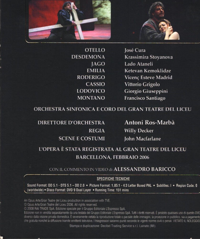 | Titolo: | Otello di Giuseppe Verdi. Passione Lirica vol. 6. DVD in Italiano. Versione da edicola |