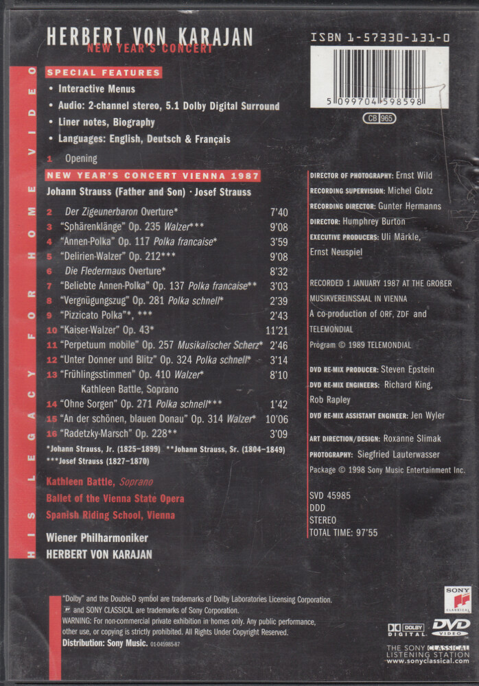 Herbert Von Karajan: New Year’S Concert Vienna 1987 – Strauss DVD in Inglese
