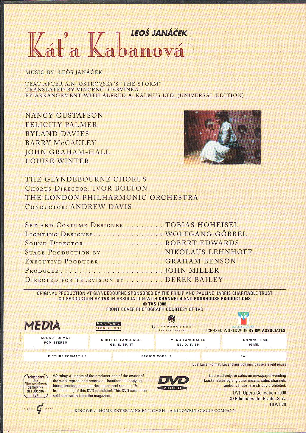 | Titolo: | Kat’a Kabanova. Leos Janacek. Opera completa (1 DVD) Nancy Gustafson (Edizione PAL Regione 2, Lingua Cecoslovacco, Sottotitoli inglese, francese…) Versione da edicola. |