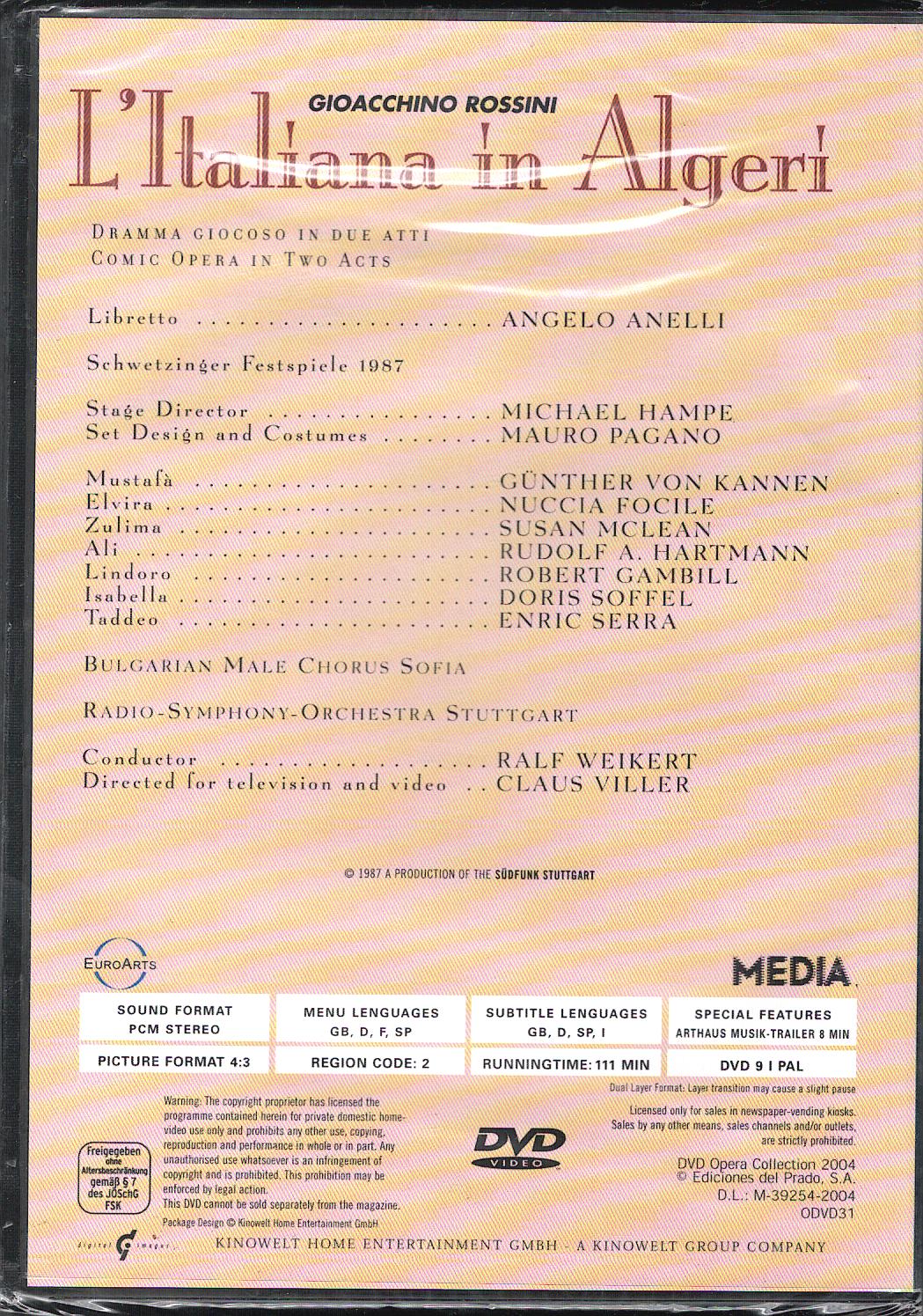 | Titolo: | L’Italiana in Algeri. Gioacchino Rossini. Opera completa in due atti (1 DVD) Doris Soffel (Edizione PAL Regione 2, Lingua Italiano, Sottotitoli italiano, inglese, tedesco…) Versione da edicola. |