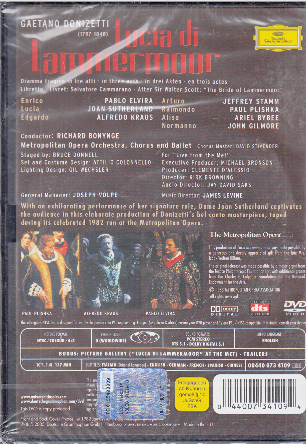 | Titolo: | Lucia Di Lammermoor di Donizetti. Bonynge Metropolitan Opera Orchestra. DVD NTSC (No PAL) in Inglese |
