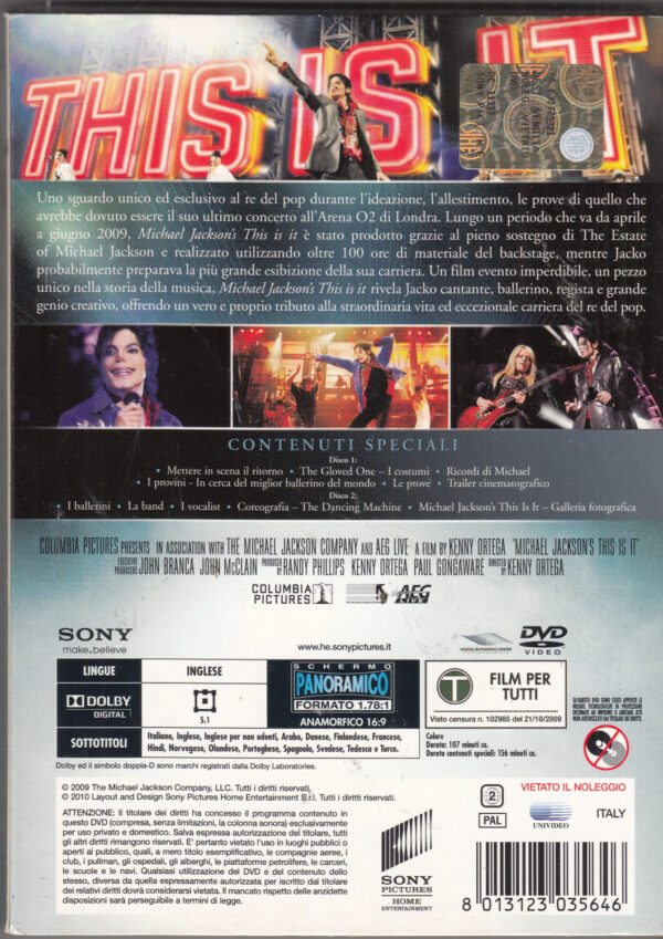 | Titolo: | Michael Jackson’s. This Is It. Special Edition con n. 2 DVD in Inglese. Sottotitolato Italiano. Con Slipcase |