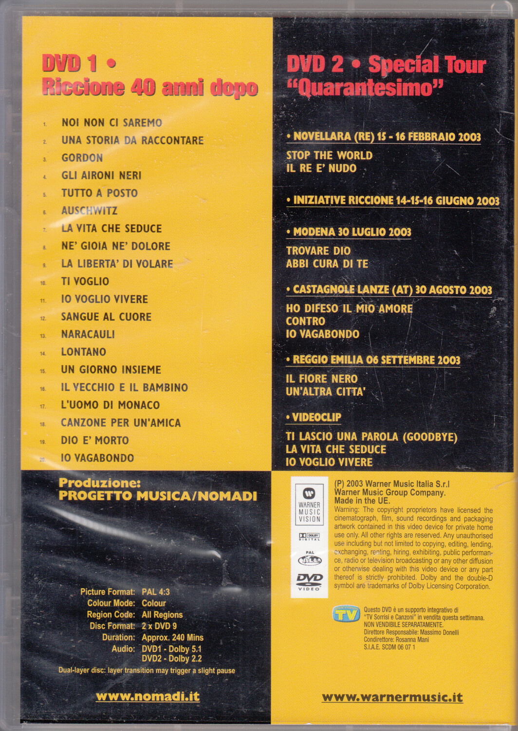 | Titolo: | Nomadi – Nomadi 40 – (2 DVD) Versione da edicola. DVD in Italiano |