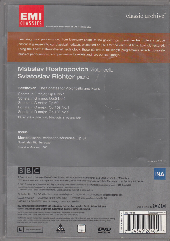 | Cast: | Rostropovich Mstisla,Beethoven,Mendelssoh |