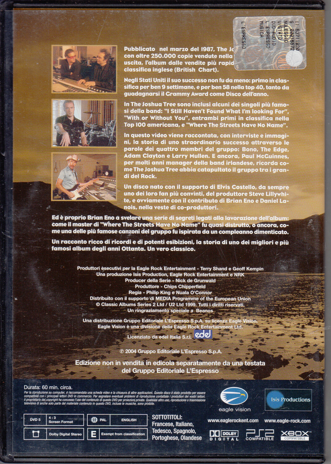 | Titolo: | U2 – The Joshua Tree – Versione da edicola. DVD in Italiano |