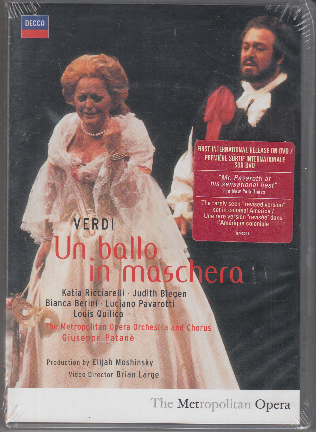 Un Ballo In Maschera di Verdi con Pavarotti e Ricciarelli. Metropolitan Opera. DVD Edizione Stati Uniti NTSC Regione 1, Lingua Inglese
