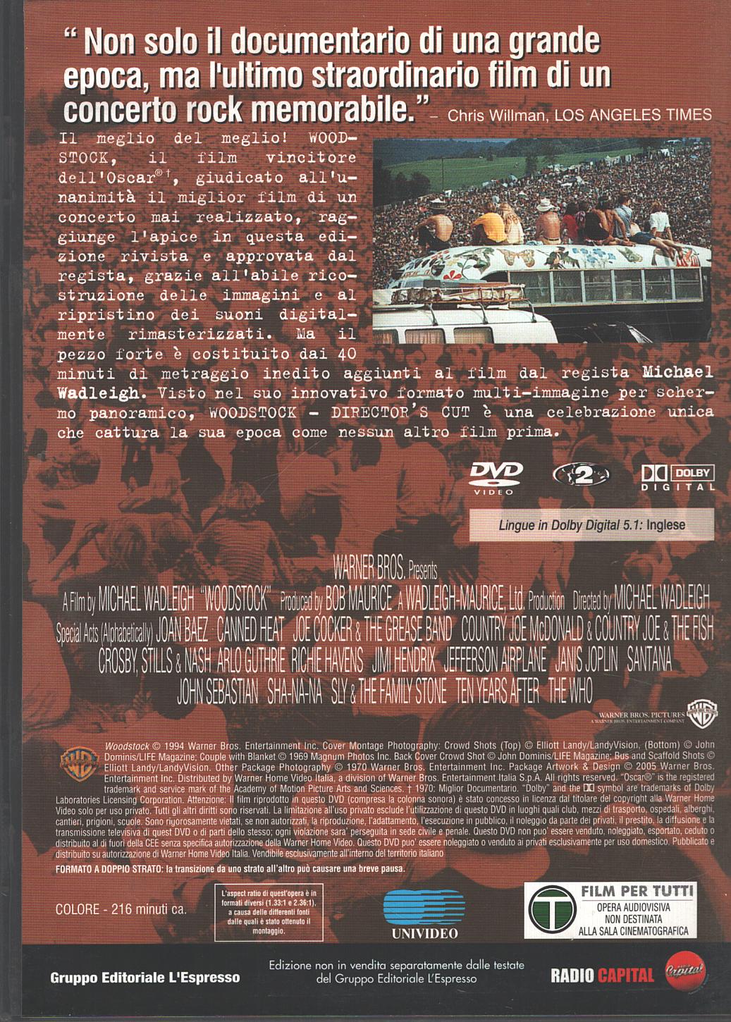 | Titolo: | Woodstock Director’s Cut – Versione da edicola – DVD in Inglese |