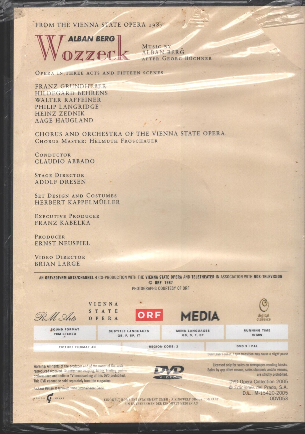 | Titolo: | Wozzeck – Alan Berg – Opera completa DVD – Franz Grundheber (Edizione PAL Regione 2, Lingua tedesco, Sottotitoli italiano, inglese, francese) Versione da edicola |