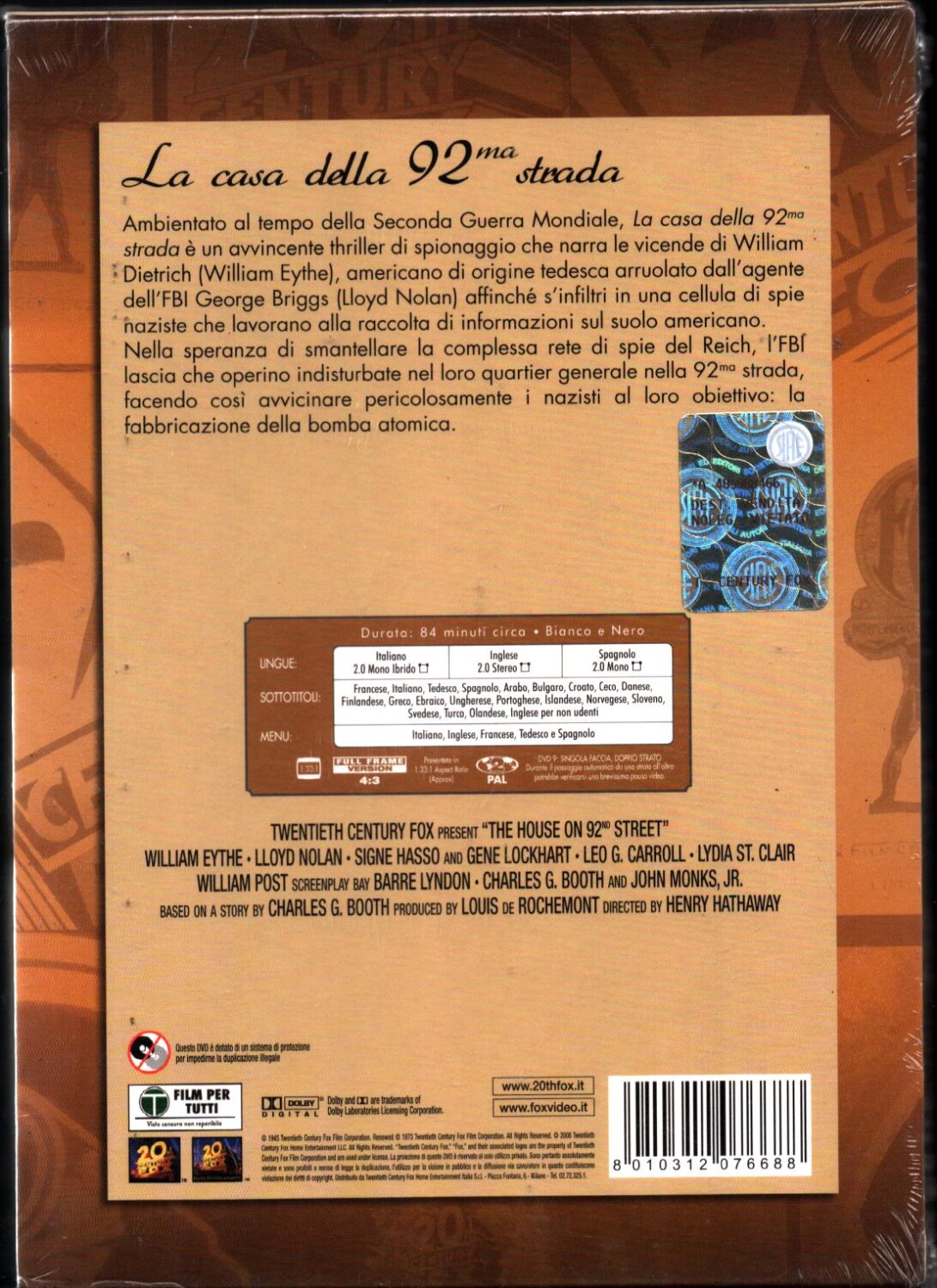 | Titolo: | La casa della 92ma strada. DVD in Italiano |