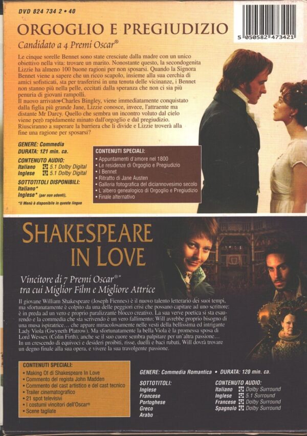 | Titolo: | Orgoglio e Pregiudizio – Shakespeare in Love – (2 DVD) con Cofanetto – DVD in Italiano |