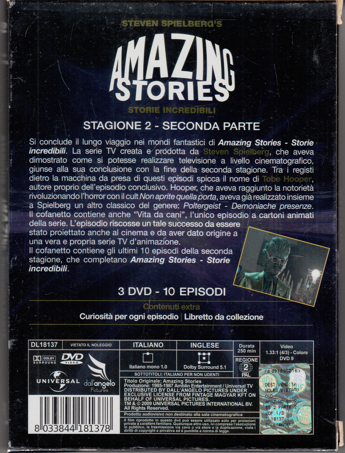| Titolo: | Amazing Stories. Storie Incredibili. Stagione 1-2 Complete (Episodi 45) con n. 12 DVD con cofanetti |