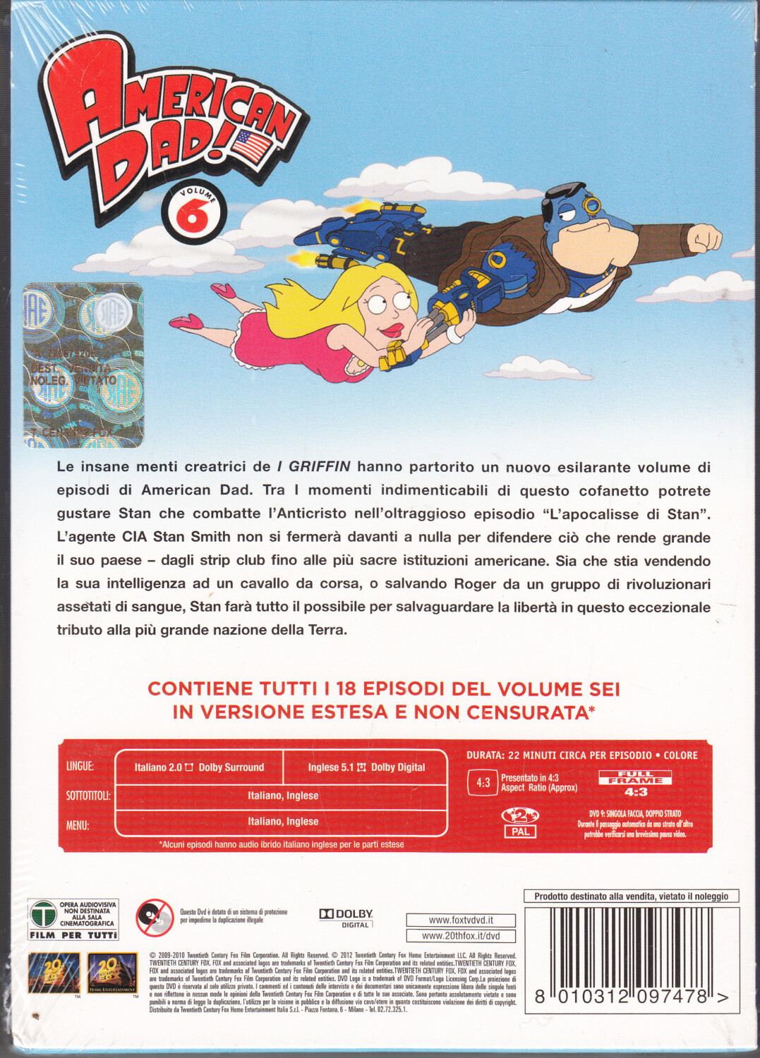 | Titolo: | American Dad! Stagione 6 Completa. (Episodi 1-18) con n. 3 DVD in Italiano con Cofanetto. Nuovo |