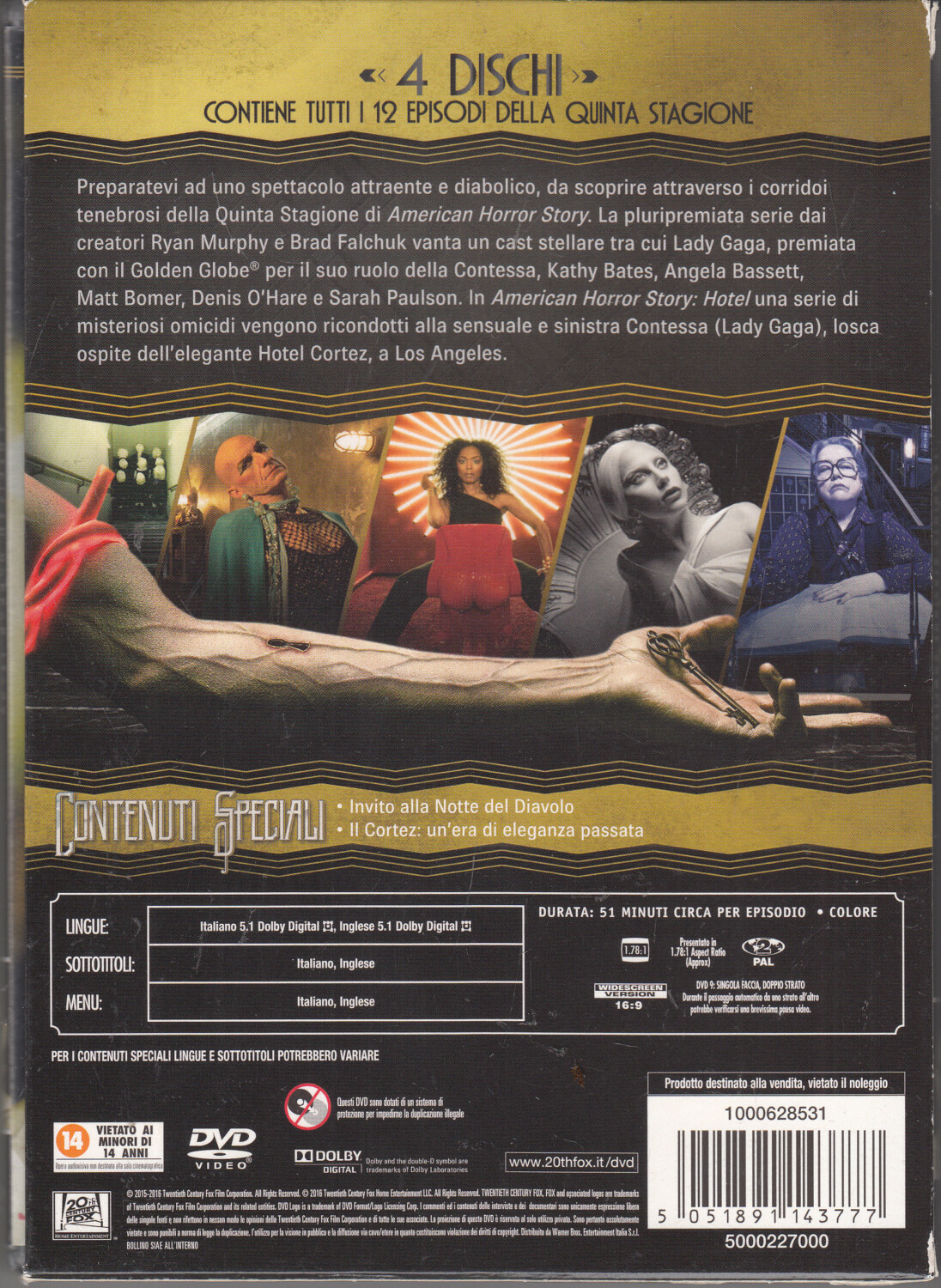 | Titolo: | American Horror Story. Stagione 5 Completa. Episodi 1-12 con n. 4 DVD in Italiano con Cofanetto |