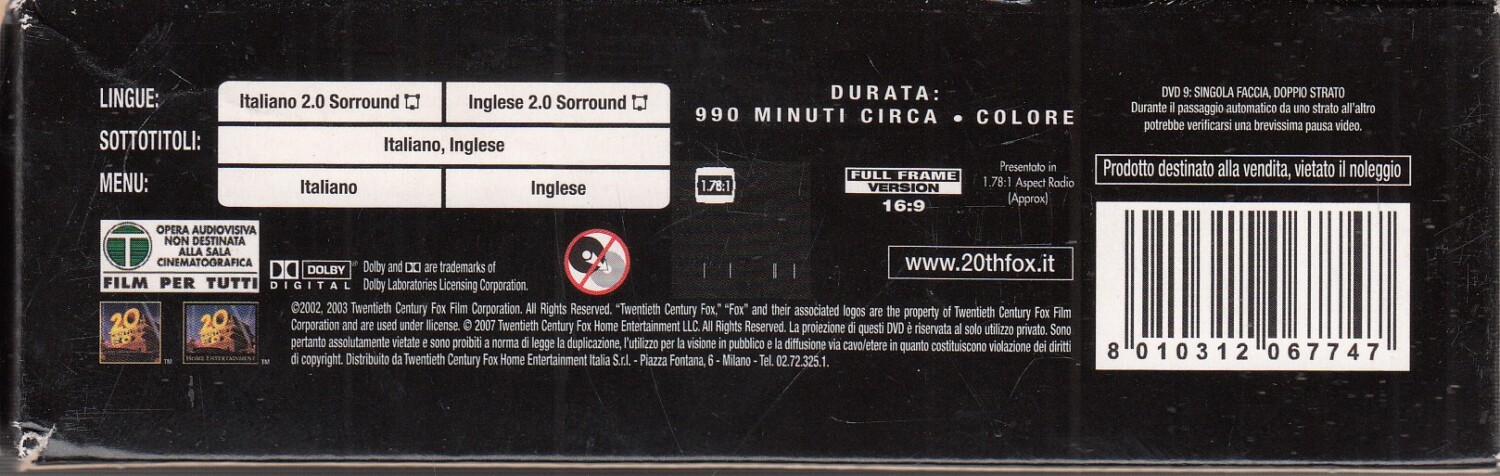 | Dischi: Condizioni Ottime (Presentano qualche leggerissimo graffietto, perfettamente funzionanti) — Custodie: Condizioni Ottime — Custodie formato Slim. Libretti non presenti (fogli cartacei interni con i dati del film). Con cofanetto in cartoncino. |