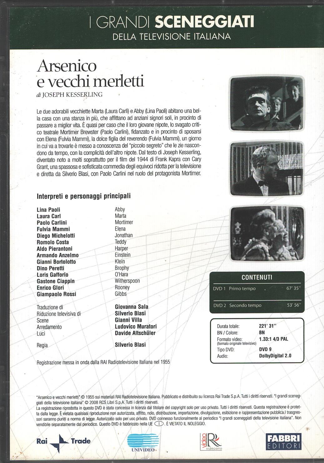 | Titolo: | Arsenico e vecchi merletti – Miniserie Completa DVD RAI (2 DVD) (Episodi 1-2) I Grandi Sceneggiati RAI – Versione da edicola – DVD in italiano |