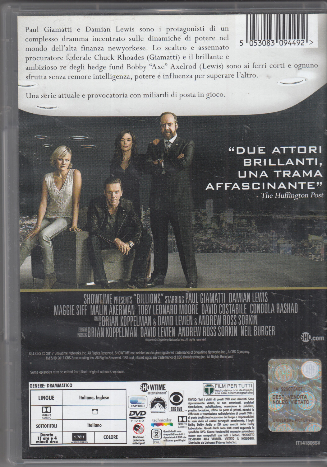 | Titolo: | Billions. Prima Stagione 1 Completa. (Episodi 1-12) con n. 4 DVD in Italiano |
