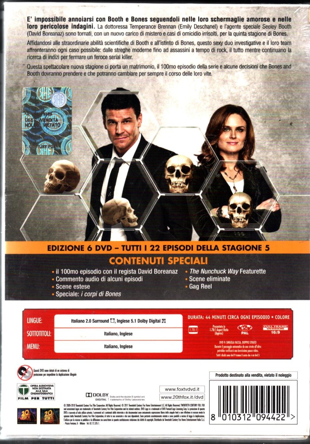 | Titolo: | Bones. Stagione 5 con 6 DVD in Italiano Episodi 22. Zooey Deschanel |