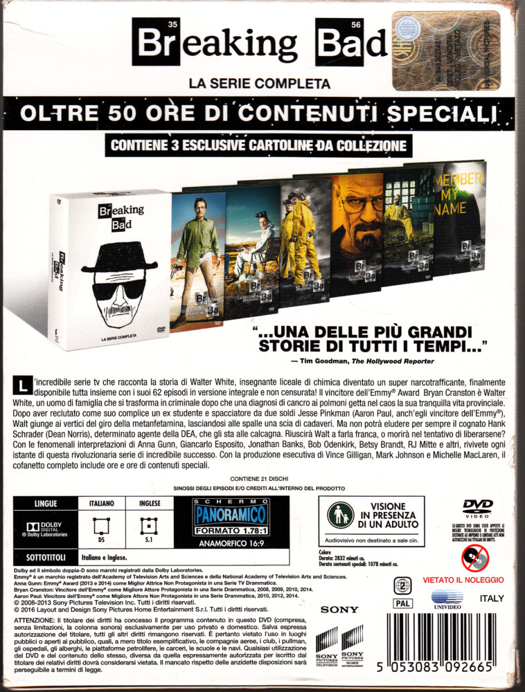 Breaking Bad. Serie Completa. Stagioni 1-6 (Episodi 62) (21 DVD) con Cofanetto e Cartoline. DVD in Italiano