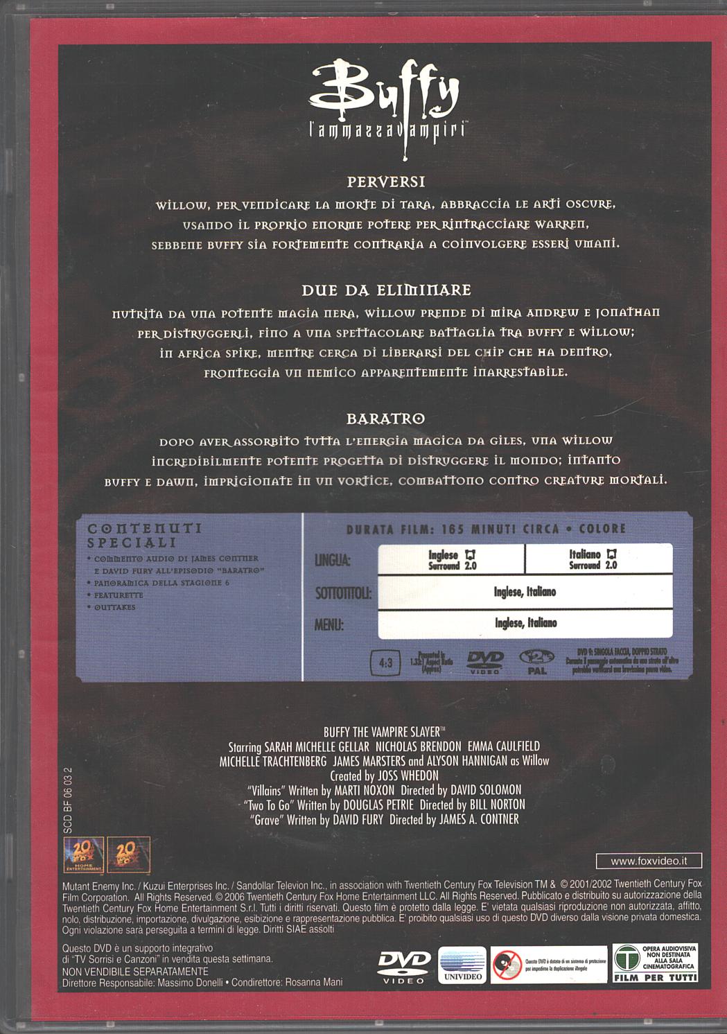 | Titolo: | Buffy L’AmmazzaVampiri – Stagione 6 Completa (Episodi 1-22) (6 DVD) Versione da edicola – DVD in Italiano |