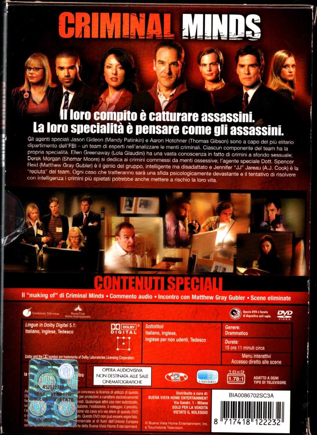 | Titolo: | Criminal Minds – Stagione 1 Completa (Episodi 1-22) (6 DVD) con Cofanetto – DVD in Italiano |