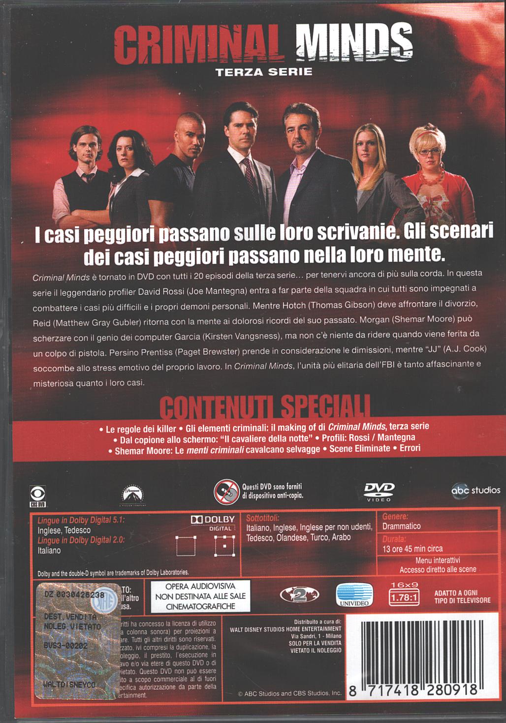 | Titolo: | Criminal Minds – Stagione 3 Completa – (Episodi 1-20) (Box 5 DVD) DVD in Italiano |