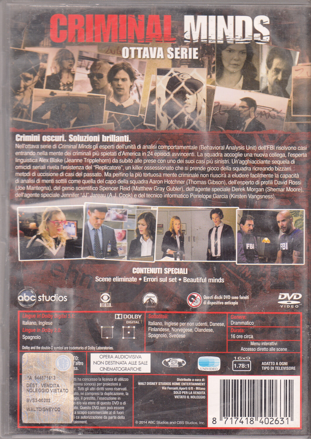 Criminal Minds. Stagione 8 Completa. Episodi 1-24 con n. 5 DVD in Italiano