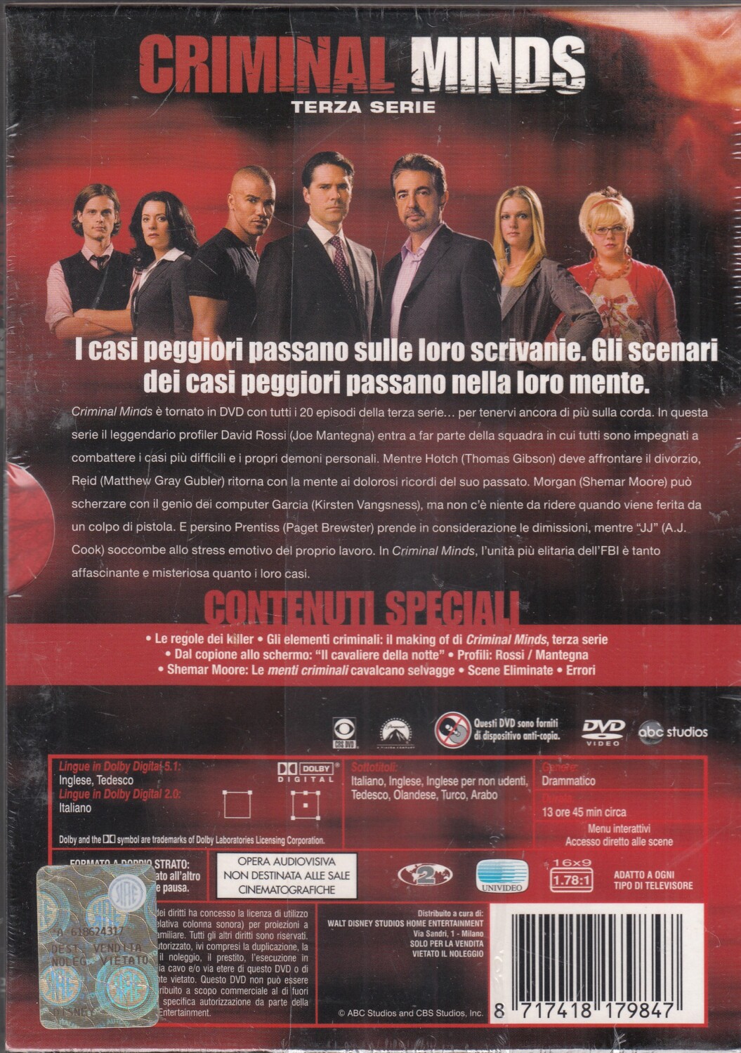 Criminal Minds – Stagione 3 Completa (Episodi 1-20) (5 DVD) con Cofanetto – DVD in Italiano
