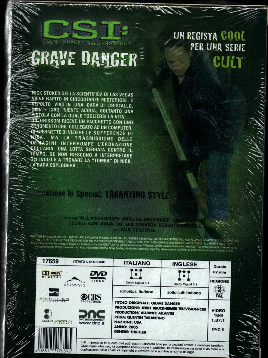| Titolo: | CSI – Crime Scene Investigation Grave Danger – DVD in Italiano (Quentin Tarantino) con Cofanetto |