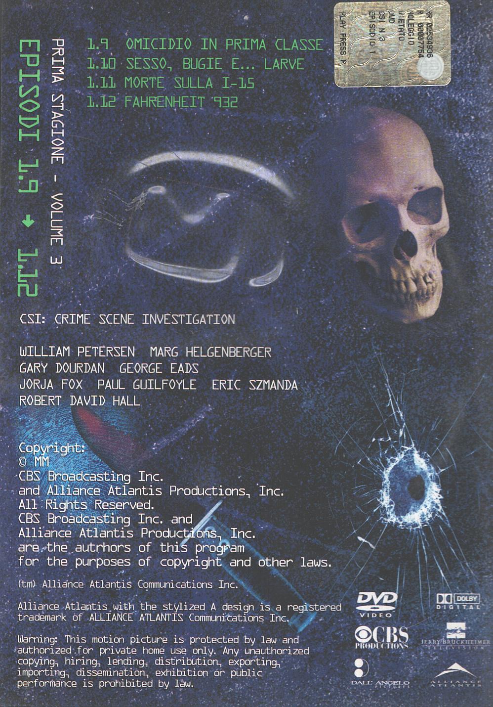 | Titolo: | CSI Crime Scene Investigation – Stagione 1 DVD vol. 3 (Episodi 9-12) – Versione da edicola – DVD in Italiano |