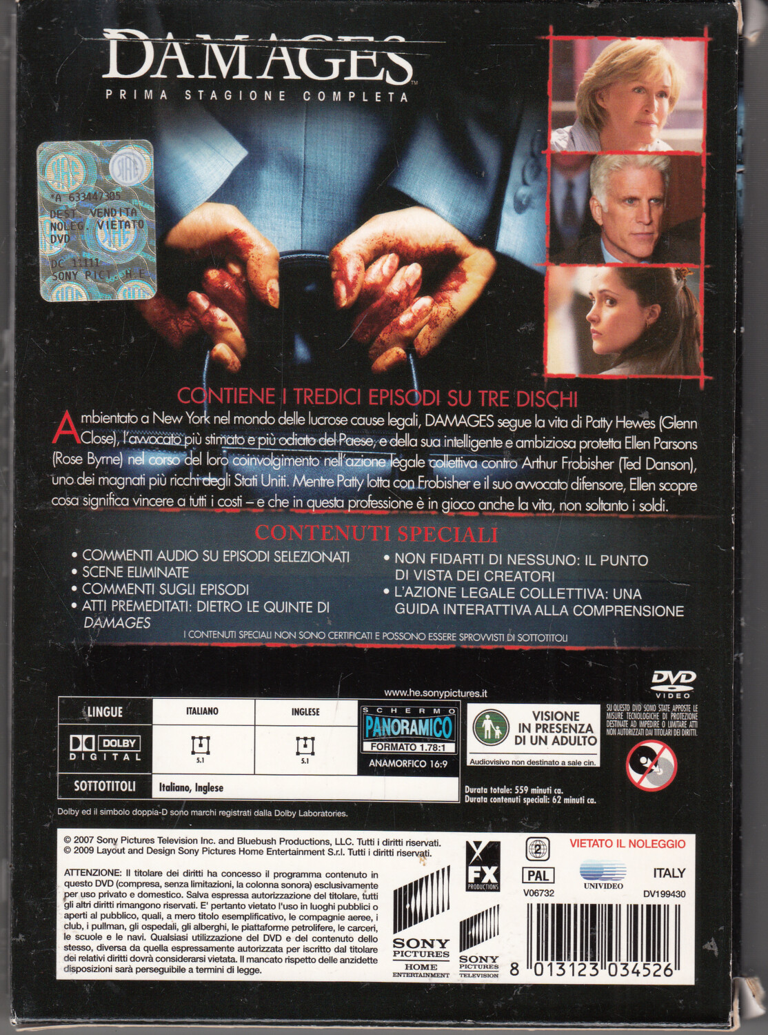 | Titolo: | Damages – Stagione 1 Completa (Episodi 1-13) (3 DVD) con Cofanetto – DVD in Italiano |