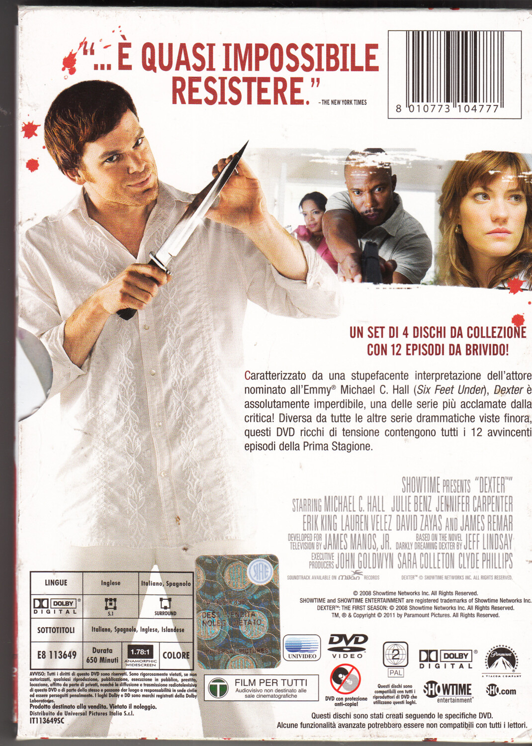 | Titolo: | Dexter – Prima Stagione 1 Completa (Episodi 1-12) (4 DVD) con Cofanetto – DVD in Italiano |