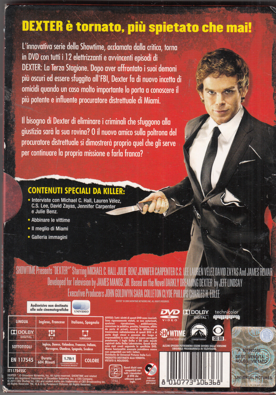 | Titolo: | Dexter – Stagione 3 Completa (Episodi 1-12) (4 DVD) con Cofanetto – DVD in Italiano |