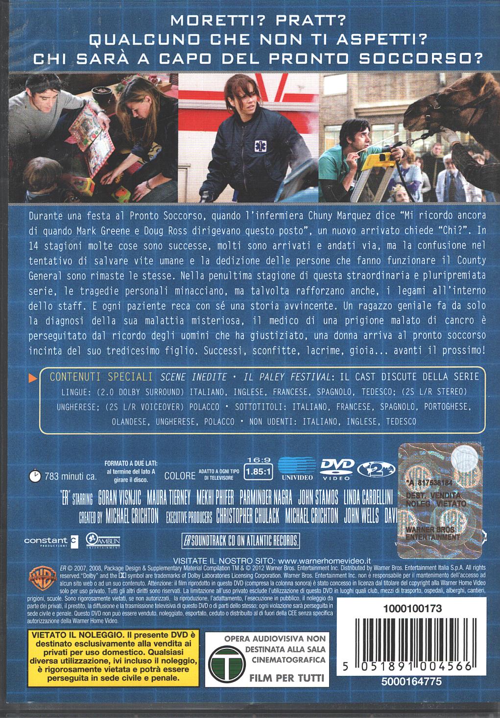 | Titolo: | E.R. Medici in Prima Linea Anno 14. Stagione 14 Completa. (Episodi 1-19) (6 DVD). DVD in Italiano |