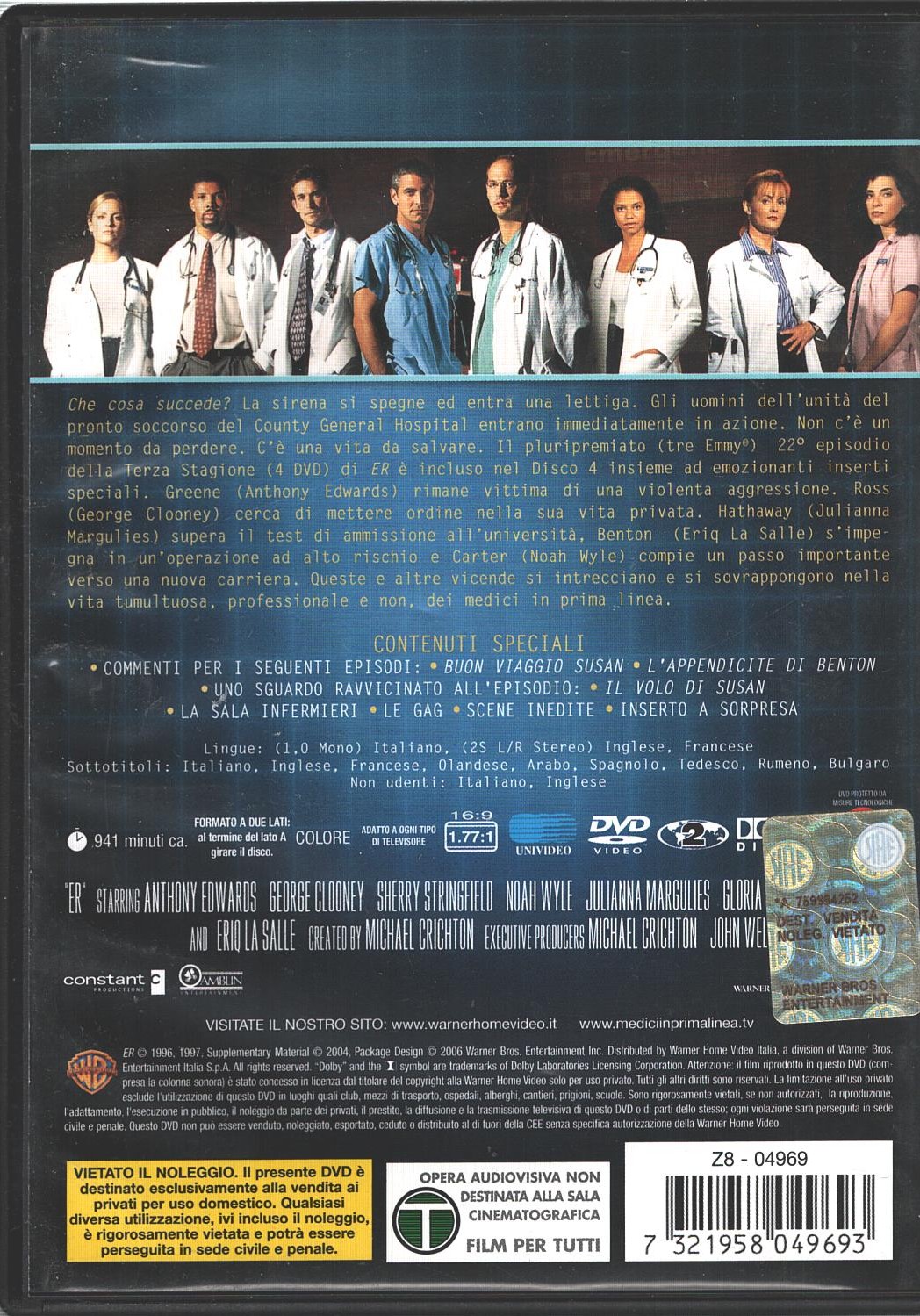 | Titolo: | ER Medici in Prima Linea Anno 3 – Stagione 3 Completa (Box 4 DVD) (Episodi 1-22) DVD in Italiano |