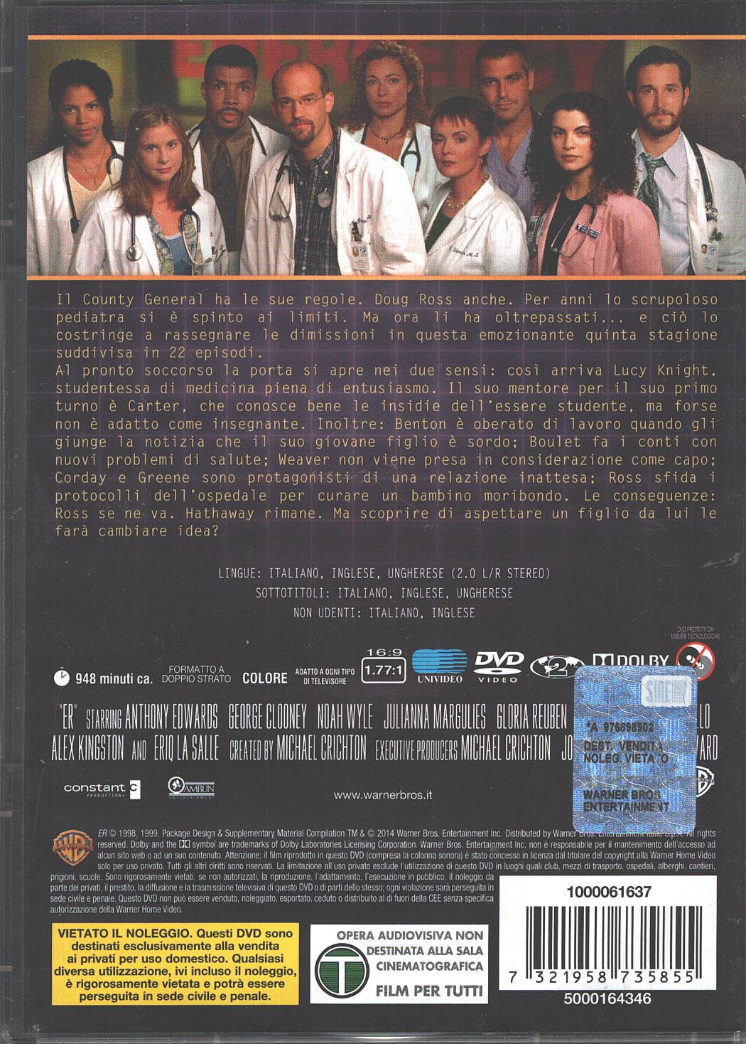 | Titolo: | ER Medici in Prima Linea Anno 5 – Stagione 5 Completa (Box 6 DVD) (Episodi 1-22) DVD in Italiano |