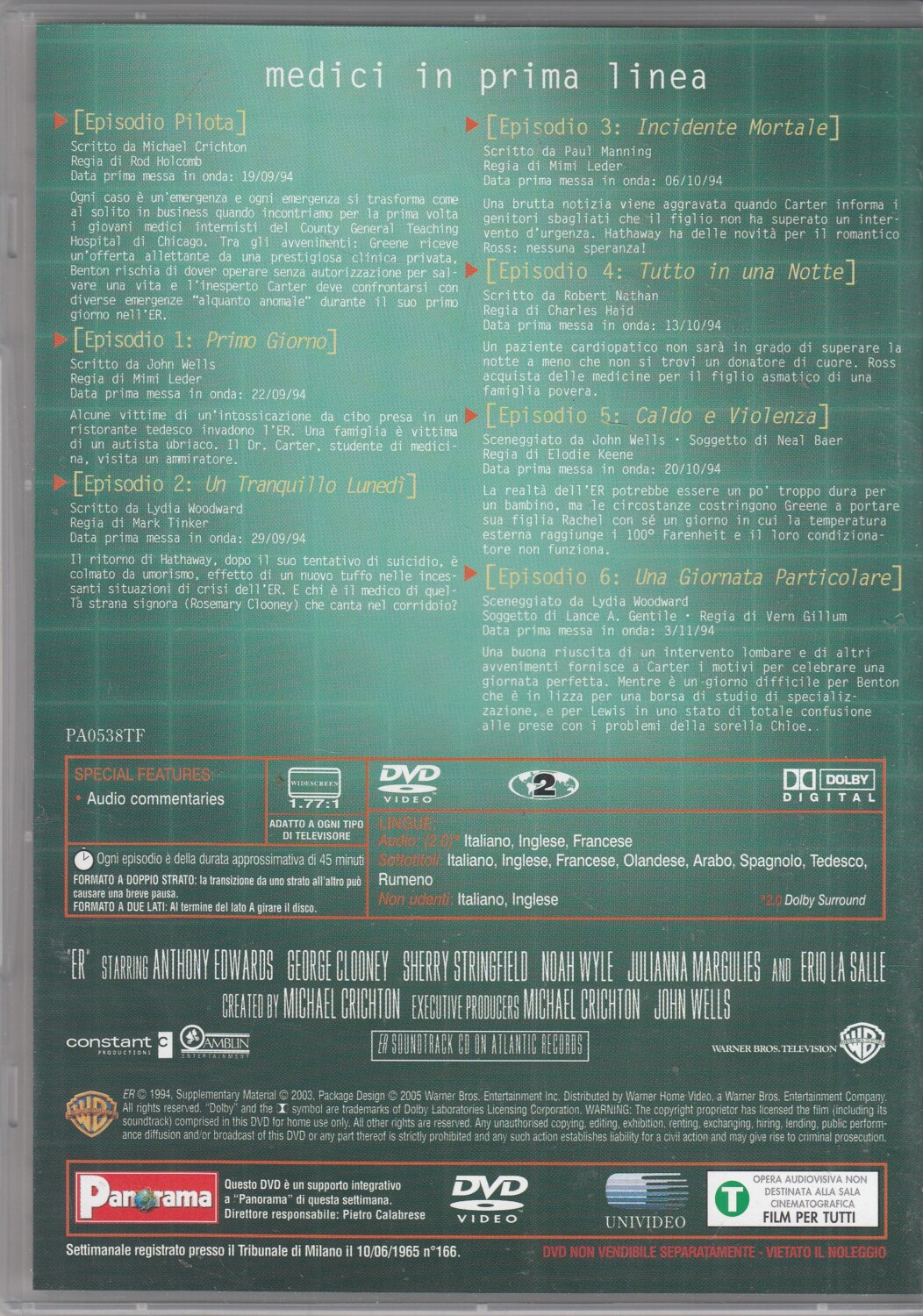 E.R. Medici in prima linea. Stagioni da 1 a 9 Complete. (Episodi 201) con n. 43 DVD in italiano con Cofanetti. Versione da edicola