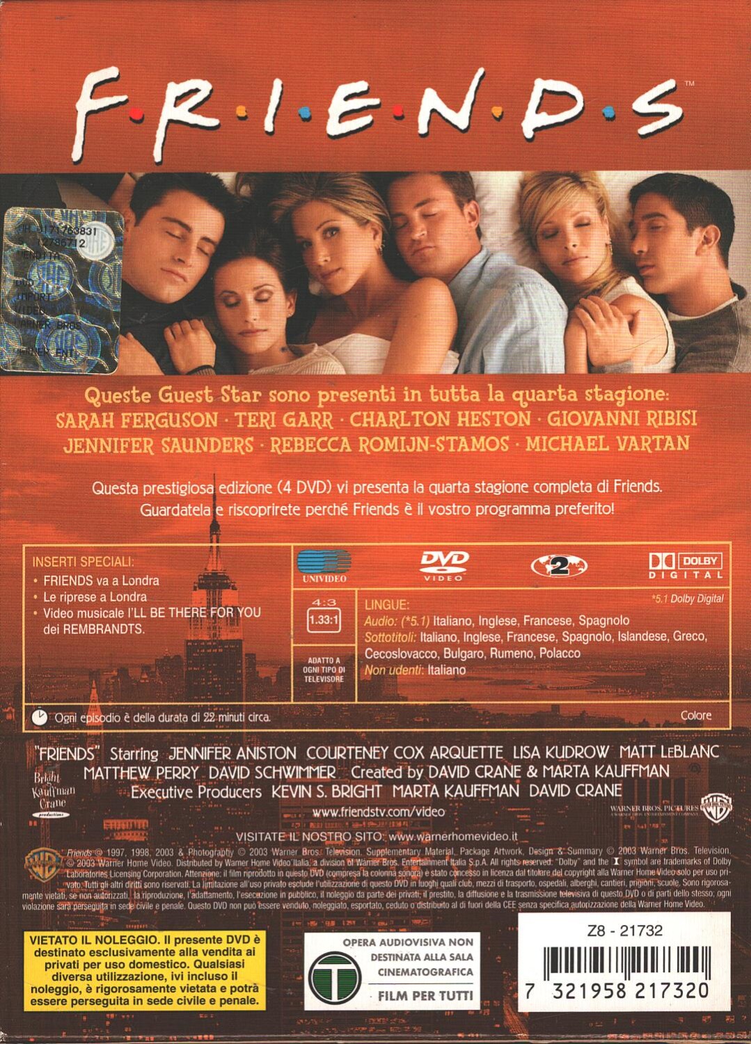 Friends – Stagione 4 Completa (Episodi 1-24) (4 DVD) con Cofanetto – DVD in Italiano