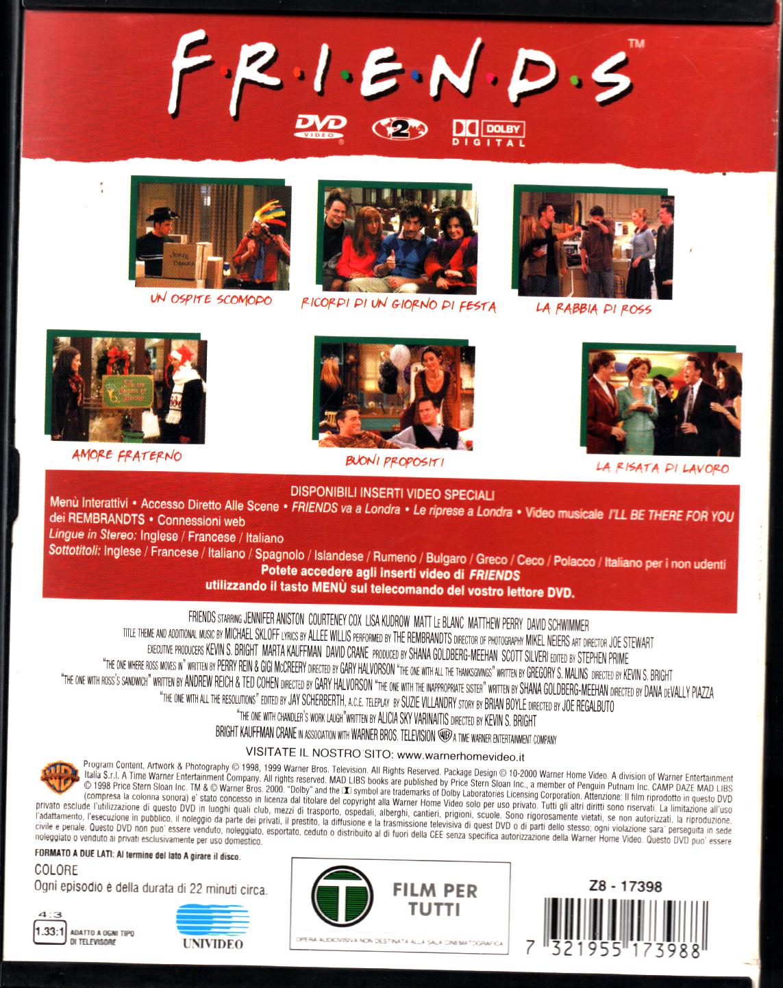 | Titolo: | Friends . Quinta Stagione 5. Episodi 19-23 DVD in Italiano Jennifer Aniston |